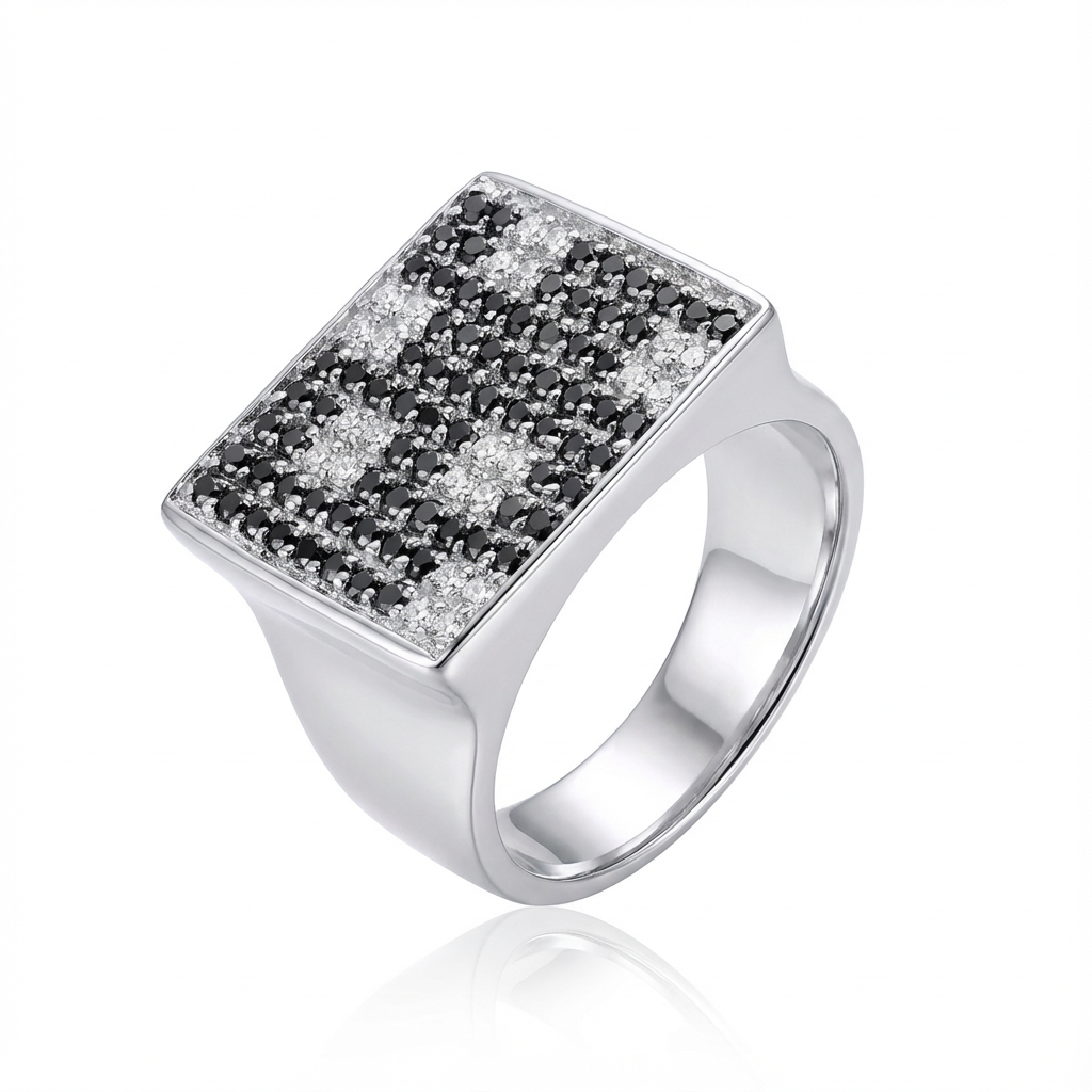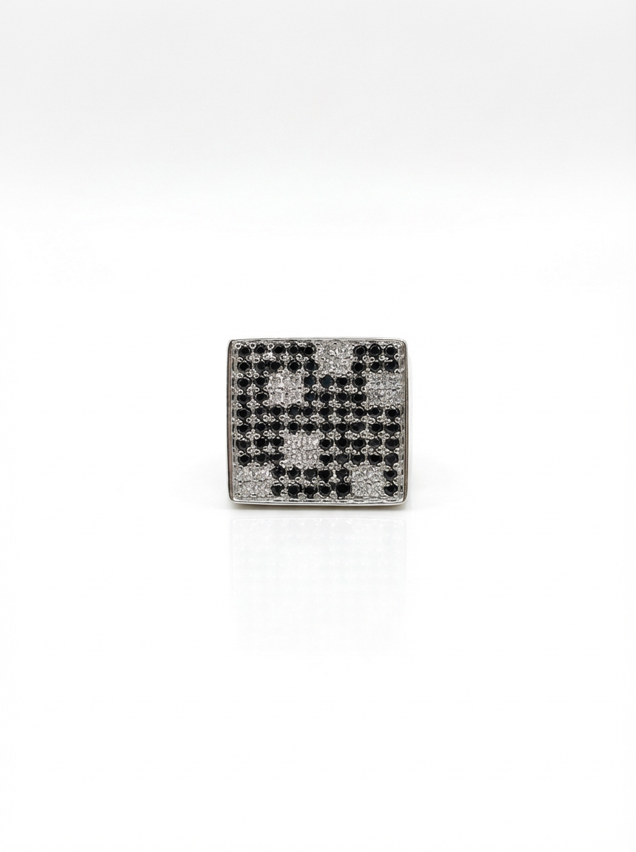 Anel xadrez onix e zircônia